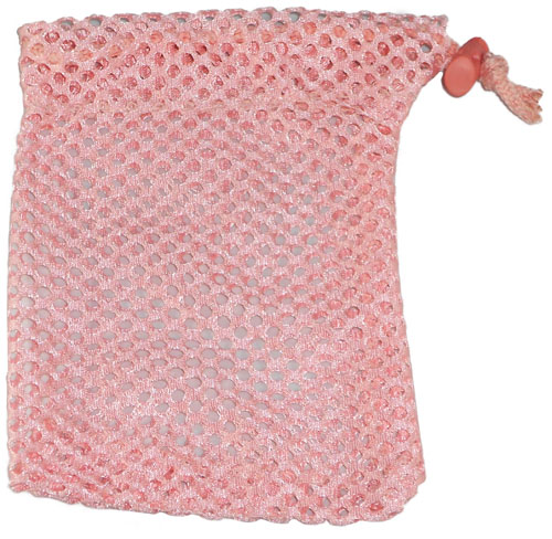 Personal size, mesh bag with drawstring and toggle. Perfect for all small accessories. 100% nylon.
