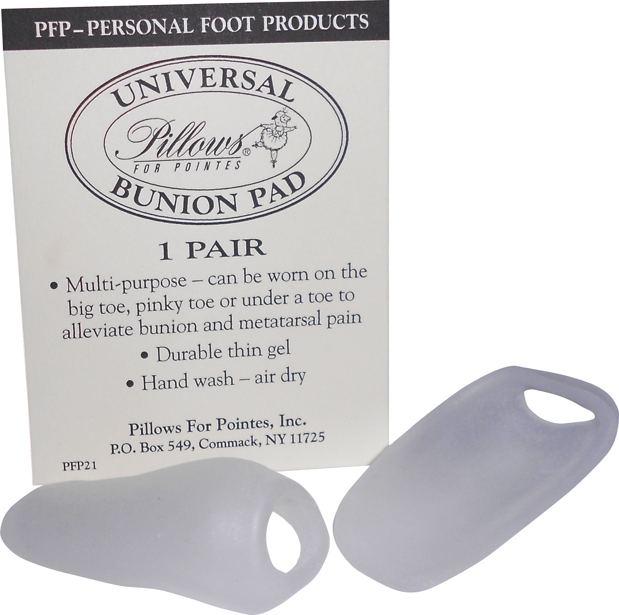 Multi-purpose. Can be worn on the big toe, pinky toe or under a toe to alleviate bunion and metatarsal pain. Hand wash and air dry.